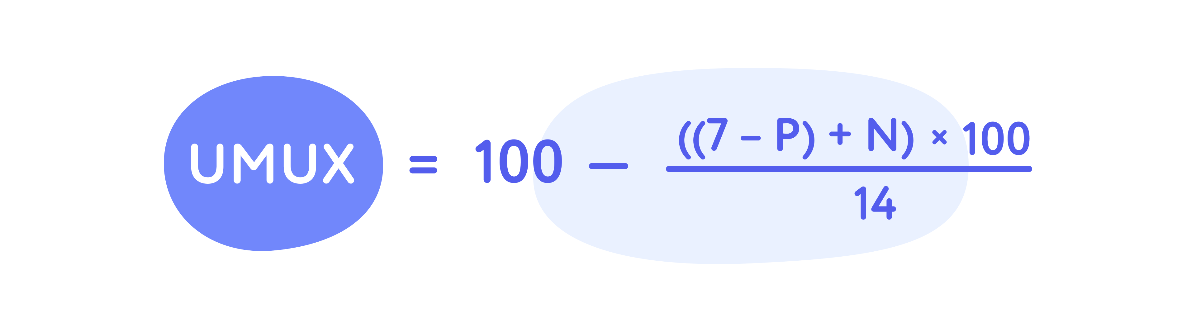 - UMUX = 100 − ((7−6.5)+2) × 100 / 14 = 82.1