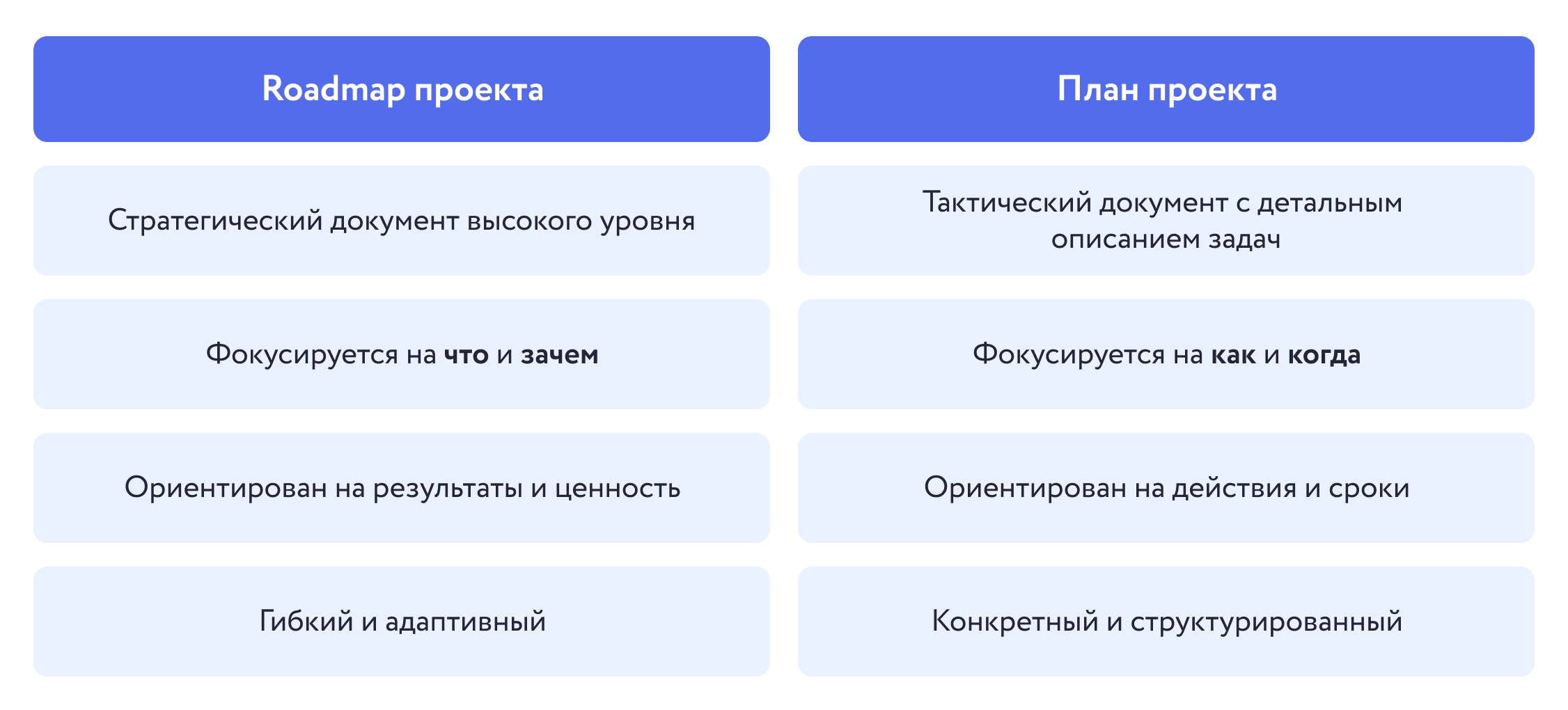 Хотя роадмап и план проекта часто путают, между ними есть существенные различия: